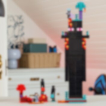 Bygg og utforsk det store Endermann-tårnet. Med figurens bevegelige armer og modulære design kan du bygge, leke med og stille ut i episk Minecraft®-stil! Tilføy LEGO® Minecraft figurer, scenarioer fra den vindskjeve og den høyrøde skogen, skatter og våpen. Bygg deretter tårnet om til en Endermann-festning! Besøk de actionfylte rommene og Underverdenportalen, og få en endeløs rekke av nye eventyr!