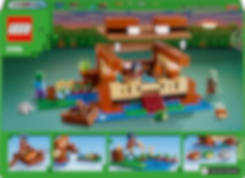 Dette LEGO® Minecraft® lekehuset er formet som en frosk, og kommer med populære figurer fra spillet. LEGO Minecraft Froskehuset (21256) er en engasjerende gamer-gave til barn fra åtte år. Froskehuset er en byggeleke for barn som elsker Minecraft-spillet, fullpakket med autentiske Minecraft-detaljer – en seng, et bord, en arbeidsbenk, et ildsted, en kiste, en kake og honning – og et avtakbart tak for enkel tilgang. Utenfor ligger det en gård hvor spillere kan høste rødbete, hvete og blomster, en innsjø hvor barn kan leke med fiskestangen og en mørk eikebåt med årer. Det er tre typer frosker (grønn, grå og brun) og en slimkube, som spillere vet har en spesiell interaksjon med frosker. Dette allsidige LEGO Minecraft settet inneholder figurer av en Minecraft-helt, en zombie og en Druknet med trefork for endeløs spillaction og rollelek. De unge byggerne vil også elske LEGO Builder appen, som lar dem zoome inn, rotere i 3D og spore fremgangen.
