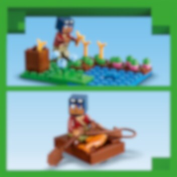 Bygg sumputforskeren et froskeformet hus med alt en minecrafter trenger: en seng, en arbeidsbenk, et ildsted, en kiste, en kake og honning. Utenfor ligger det en gård hvor du kan høste rødbete, hvete og blomster. Hvis det dukker opp en zombie, kan du slå den tilbake med diamantsverdet og rømme over innsjøen i en båt. Men det spennende eventyret fortsetter når det kommer en Druknet med trefork opp av vannet!
