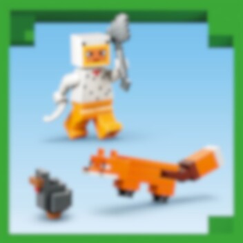 Ta Steve med på eventyr i Minecrafts taiga-biom! Steves taigaeventyr (21583) er et lite Minecraft-sett fylt med kamp, skattejakt og eksplosiv lek. Steve graver frem diamanter med diamantsverdet sitt og sprenger løs steiner med TNT. Men pass deg for Creeper som lurer! Settet inneholder en Steve-minifigur pluss figurene Creeper, rev og babykanin. 79 biter. Anbefalt alder: 6+.