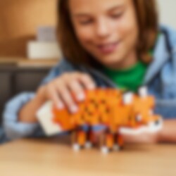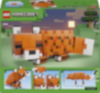 Bygg en imponerende rev fra Minecraft å vise frem! Reven (21588) er en stor, detaljrik figur med bevegelige bein, vribar hals og et hode som kan vise reven med øynene åpne eller lukket. Sett den stående og våken, sittende med lutet hode eller liggende og sovende. 497 klosser for Minecraft-fans og byggere fra 10 år.