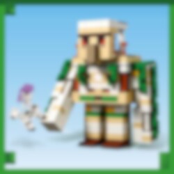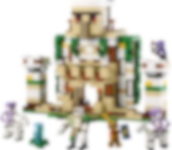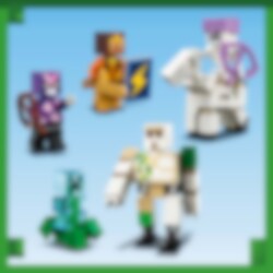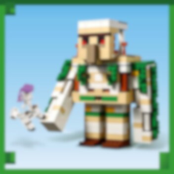 LEGO® Minecraft® Jerngolemens borg (21250) skjuler en overraskelse: Den imponerende strukturen kan forvandles til en kjempehøy golem. Det byggbare utstillingssettet byr på spennende og actionfylt lek for Minecraft-spillere fra ni år. Det ultimate LEGO Minecraft golem-lekesettet Med dette episke lekesettet får barn to ulike lekescenarioer. Det første foregår i en golem-borg og inkluderer to helter fra dataspillet, krystallridderen og den gylne ridderen, som beskytter borgen mot fiendtlige angripere i form av en ladet Creeper og to skjelettryttere. I det andre scenarioet kan barn bygge om borgen til en gigantisk golem-figur med digre, bevegelige armer. Med velkjente Minecraft-funksjoner og -tilbehørselementer er det duket for uendelig mange lekemuligheter. Byggere kan få ekstra digital moro med den interaktive LEGO Builder appen, hvor de kan zoome og rotere sett i 3D samt spore framdriften sin.