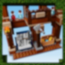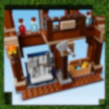 Gjenskap Minecraft®-filmscener med Steve, Garrett, Henry og en hønse-jockey i kamp på arenaen ved skogspalasset! Velg våpen, og la kampen begynne – men forbered deg på å måtte kjempe mot Storsvinet, som plutselig kan gå til angrep på alle!