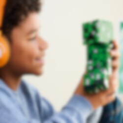 Denne smygeren er alltid klar for litt action – enten den sniker seg gjennom Minecraft®-verdenen eller står på utstilling på rommet ditt. Den skjuler også en overraskelse. Ta av fronten på smygerens hode, så finner du en miniutgave av den første smyger-versjonen og et TNT-element. Alt du trenger for eksplosive Minecraft-eventyr!