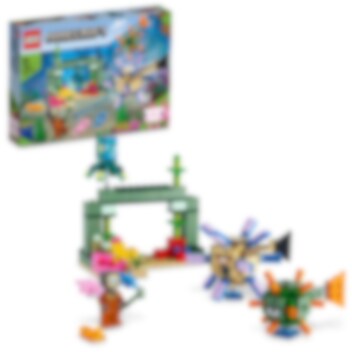 LEGO® Minecraft® Vokterslaget (21180) tar med spillere fra åtte år på et undervannseventyr med mange velkjente figurer og funksjoner fra det superpopulære spillet. Et hav av moro for Minecraft-spillere Barn får et actionfylt eventyr med dette spennende Minecraft-settet som foregår på havets dyp. Først skal de bygge et monument på det fargerike korallrevet. Der skjuler det seg en ekte skatt, men også to ikoniske Minecraft-mob-er: en vokter og en Elder-vokter, som begge er fast bestemt på å stoppe alle inntrengere. Barna kan bevæpne seg med en trident og får hjelp av tre tamme axolotler når de skal forsvare seg mot de fiendtlige mob-ene og fortsette å utforske. Den største vokterens fjærbelastede laserrakett-skyter gjør livet ekstra farlig, så det gjelder å passe seg! Dette LEGO klossesettet byr på utallige kreative lekemuligheter og er minst like spennende som den digitale versjonen av Minecraft-spillet