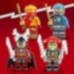 Byggere fra sju år og fans av kule kjøretøy kan finne på historier om det godes kamp mot det onde med det actionfylte lekesettet Kais EVO-robotsykkel (71783). Settet inkluderer en bevegelig robot og en tøff motorsykkel som kan oppgraderes til en større modell ved hjelp av gullfargede sidepaneler og en stor gullklinge. Det godes kamp mot det onde Byggesettet inkluderer minifigurer av Kai og Nya, begge med sverd, Knokkelkonge med sverd og Knokkeljeger med knokkeløks og sverd. Barn som løser utfordringen, vil bli belønnet med et samlerbanner for Fokus, som kan vises fram på ninja-motorsykkelen. En gøyal, digital opplevelse for LEGO byggere Du og barnet ditt kan oppleve et intuitivt og enkelt byggeeventyr med LEGO Builder appen. Zoom og roter modeller i 3D, lagre sett og spor fremdriften din.