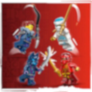 Kais ildelement-robot har et stort, gyllent sverd som han bruker når han går til kamp sammen med Zane mot onde Jordana og Ulvemaskekrigeren foran skyggedojoen. Nå kan du også for første gang lage din egen, unike robot ved å kombinere deler fra tretøffe ninja-roboter som styres av Sora, Cole og Kai. De tilpasningsbare figurene selges separat og har avtakbare bein, armer, våpen og overkropper som du kan mikse og matche slik du vil.