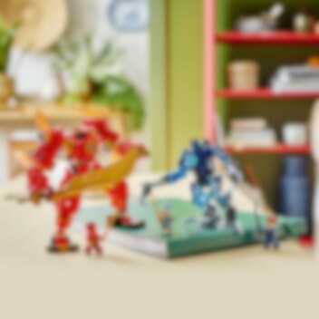 Barn fra sju år kan gjenskape historier fra sesong 2 av TV-serien NINJAGO® Dragene våkner med ninja-leken Kais ildelement-robot (71808). Roboten har bevegelige armer og bein som kan vris til dramatiske kamppositurer, en cockpit med plass til en minifigur og et stort, gyllent sverd som kan brukes i rollelek-kamper mot Ulveroboten. Med denne tilpasningsbare roboten kan barn dessuten bygge sin egen robot! Robotfigurens avtakbare bein, armer og overkropp kan settes sammen med deler fra to andre roboter: Coles jordelement-robot (71806) og Soras teknologielement-robot (71807) (selges separat). Barn får grenseløs gøyal bygging, hvor de kan sette sammen de ulike delene til en unik actionfigur-leke. Den røde roboten inkluderer fire minifigurer – Kai og Zane med hvert sitt katanasverd, Jordana med et sverd og en Ulvemaskekriger – som barn kan finne på heftig ninja-action med. Settet kan også bygges med LEGO® Builder appen, som gir deg og barnet ditt en enkel og intuitiv byggeopplevelse.