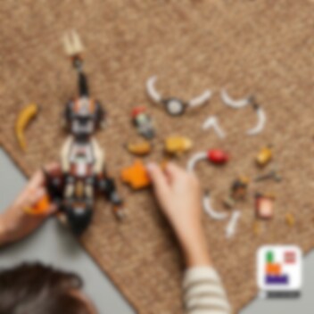 Barn fra sju år kan iscenesette spennende kamper med lekesettet LEGO® NINJAGO® Coles EVO-jorddrage (71782). Underveis kan barn oppgradere den bevegelige lekedragen og gjøre den større og mektigere ved å gi den gullvinger, horn og hale. Kule ninja-leker for barn Lekesettet inkluderer minifigurer av Cole med en gullkatana og Knokkelskorpion med en ljå samt en våpenpakke med diverse skjelettkriger-våpen. Knokkelskorpion kan ri til kamp på sin seksbente skorpionskapning. Lykkes barna med utfordringen, belønnes de med et samlerbanner for Styrke. En gøyal, digital opplevelse for LEGO byggere Du og barnet ditt kan oppleve et intuitivt og enkelt byggeeventyr med LEGO Builder appen. Zoom og roter modeller i 3D, lagre sett og spor fremdriften din.
