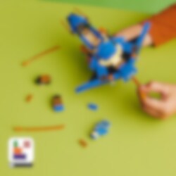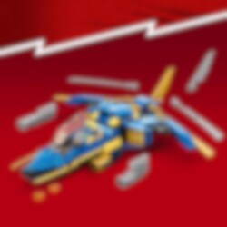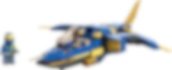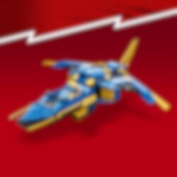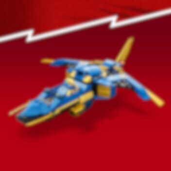 Fly av sted for å beskytte NINJAGO® City sammen med Jay i den supertøffe lynjeten hans! Se opp for skurker mens du vokter luftrommet over ninjaenes hjem. Etter landing kan du oppgradere og gjøre jetflyet større og mer fryktinngytende ved hjelp av gullklinger, et sideror og to kraftige knotteskytere. Neste gang du møter på en fiende mens du er i luften, kan du avfyre skyterne!
