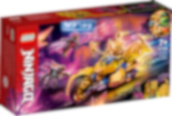 Lekesettet LEGO® NINJAGO® Jays gulldrage-motorsykkel (71768) har alt ninja-fans fra sju år trenger for å gjenskape spennende scener fra TV-serien NINJAGO: Crystallized. NINJAGO lekemotorsykkelen er utstyrt med gulldragehode med bevegelig munn og gullfargede sidepaneler. Et byggesett som ninja-fans vil elske Ninja-kjøretøysettet inkluderer minifigurer av Gulldrage-Jay, med gullnunchuck-elementvåpenet som gjør ham enda sterkere, og et par gulldragevinger med pigger, og en Vengestone-kriger med sverd og krystalledderkopp. Barn kan iscenesette spennende eventyr med Gulldrage-Jay som forsvarer NINJAGO by mot fiendens angrep. Gi barn en ny og spennende verden med samlerleker! NINJAGO leker inspirerer barn til å legge vekk skjermene sine og tre inn i en spennende verden full av fantasi og action. Der kan de bli med ninja-heltene sine og kjempe mot ondskapens krefter med en fantastisk samling lekesett som inkluderer roboter, biler, jetfly, drager og templer.