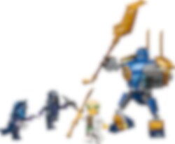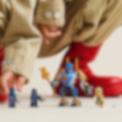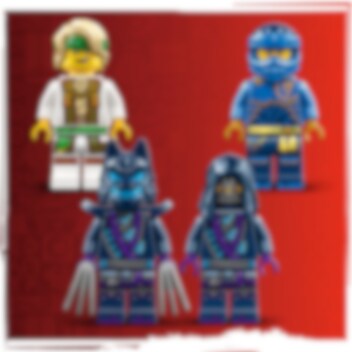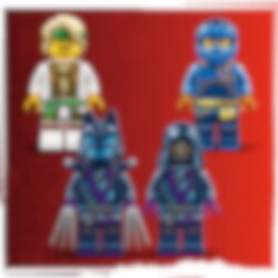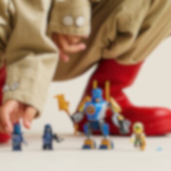 Jenter og gutter fra seks år kan gjenskape actionfylte kampscener fra sesong 2 av TV-serien NINJAGO® Dragene våkner med det spennende settet Jays stridspakke med robot (71805). Ninja-byggeleken for barn inkluderer en kul robotfigur med bevegelige armer, bein og overkropp, som er utstyrt med et stort, gyllent sverd og to knotteskytere. Dette ninja-settet inneholder fire NINJAGO minifigurer og masse tilbehør. Jay er bevæpnet med et gyllent sverd og Mester Lloyd har to katanasverd. Ulvemaske-klokrigeren har lange klør på hver hånd, mens Ulvemaskevokteren er utstyrt med en armbrøst. Det øvrige LEGO NINJAGO sortimentet av byggbare ninja-leker for barn består av drager, kjøretøy, fartøy og templer som fansen kan bruke i rollelek-eventyr med heltene sine. Alle spenningslekesettene kan lages med LEGO Builder appen, som inneholder enkle og intuitive byggeinstruksjoner for deg og barnet ditt. Zoom, roter modeller i 3D, lagre sett og spor framdriften.
