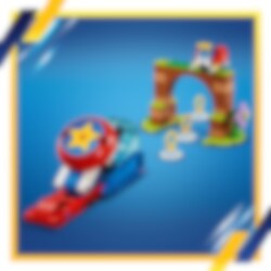 Er du klar for å bygge en bane til Sonic? Bruk fartskulen for å sende Sonic gjennom alle hindrene i et forsøk på å beseire en Moto Bug Badnik og befri Flicky. Bruk ferdighetene dine for å sende Sonic av sted for å samle ringer, gå gjennom porten og forsere rampen opp til kaossmaragden. Når Flicky er befridd, kan du leke med Sonic-figuren, chilipølsen og DJ-pulten.