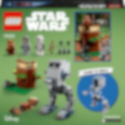 Lær små barn å bygge og leke i det spennende LEGO® Star Wars universet med dette startsettet med en AT-ST (75332). Settet er perfekt som gave til barn fra fire år og inkluderer en lettbygd 4+-modell av AT-ST fra Star Wars: Jediridderen vender tilbake med en minifigurcockpit. Settet inkluderer også LEGO minifigurer av Wicket, en rekognoseringssoldat og en AT-ST-fører med våpen i tillegg til en speeder og et ewok-utkikkssted med et tre og en katapult som inspirerer barn til gøyal rollelek med Slaget om Endor som tema. App-basert byggehjelp Gratisappen LEGO® Building Instructions inneholder digitale instruksjoner samt verktøy for zooming og rotering som gir barn en enda mer kreativ og gøyal opplevelse. Spennende 4+-sett LEGO Star Wars 4+ byggeleker gir barn fra fire år den beste introduksjonen til LEGO bygging og sagaen om Star Wars. Startklosser gjør det lett å bygge både kjøretøy, bygninger og annet – de kan velge om de vil bygge på egen hånd eller få hjelp av eldre søsken eller voksne, og de kommer raskt i gang med leken.