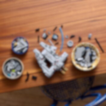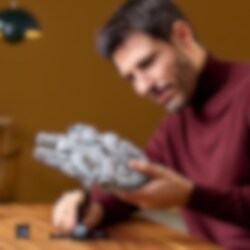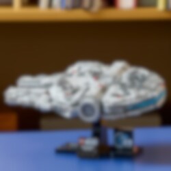 Man fram den kreative siden av Kraften for å bygge det mest ikoniske av alle romskip fra Star Wars galaksen: Han Solos Millennium Falcon. Gjenskap lett gjenkjennelige detaljer fra romskipet, slik det opptrer i Star Wars: Et nytt håp. Still ut Millennium Falcon i en actionfylt positur på sokkelen, og fest navneplaten og den spesiallagde klossen som markerer 25-årsjubileet til LEGO® Star Wars, på dette spektakulære blikkfanget av en modell.