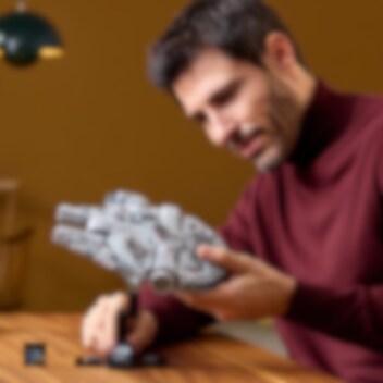 Den klassiske Star Wars sagaen fortsetter i din egen stue med bygge- og utstillingsmodellen LEGO® Star Wars Millennium Falcon (75375) for samlere. Fokuser som en jedi, og gjenskap de autentiske detaljene til dette ikoniske romskipet fra Star Wars: Et nytt håp. Still ut modellen på en byggbar sokkel som er designet for å vise fram Millennium Falcon i en dynamisk fly-positur. Fest navneplaten og den spesiallagde klossen som markerer 25-årsjubileet for LEGO® Star Wars, på dette spektakulære blikkfanget av en modell som garantert vil vekke nostalgiske minner. Dette byggbare Star Wars fartøyet inngår i LEGO Star Wars stjerneskipserie av mellomstore romskip. Det er en gøyal gave til deg selv eller til andre Star Wars fans og memorabilia-samlere. Dette unike LEGO Star Wars settet for voksne byr på en utfordrende, kreativ byggeopplevelse, som blir enda bedre med LEGO Builder appen, hvor du kan zoome og rotere modeller i 3D, spore framdriften og lagre alle settene dine på ett og samme sted.