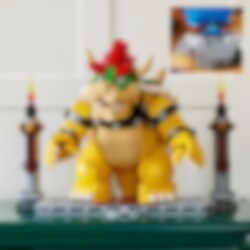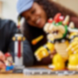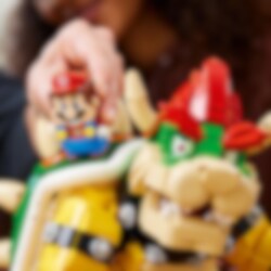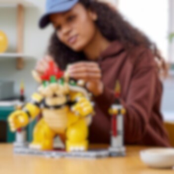 Bygg, lek og still ut med kongen av Koopas! Styr mektige Bowsers hode- og halsbevegelser, og aktiver ildkulekasteren. Still ut modellen på stridsplattformen, som er utstyrt med to tårn som han kan velge, og en skjult POW-blokk. Du kan også kombinere settet Mektige Bowser med LEGO® Super Mario startbane (selges separat) for å kjempe med LEGO® Mario, LEGO® Luigi eller LEGO® Peach.
