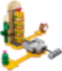 Få fart på LEGO® Super Mario™ startbanen med det actionfylte settet Ekstrabanen Ørken-Pokey! Hopp opp på hammer-dreieskiven med LEGO® Mario™. Få den store hammeren til å velte Pokey, seksjon for seksjon, før du tramper på en action-tagg for å vinne mynter! Men pass deg for Muldvarpen Monty som lurer rundt hjørnet!