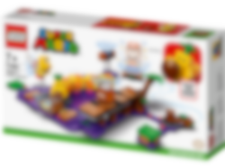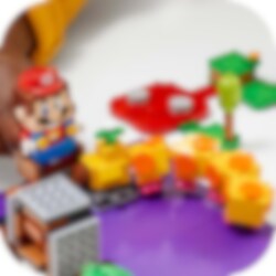 Med dette actionfylte ekstrabanesettet kan du utvide LEGO® Super Mario™ startbanesettet ditt med en Wiggler i Soda Jungle! Vri og dunk Wiggler sånn at den hemmelige broen felles ut, men pass deg for Goomba som gjemmer seg under broen. Bruk glideplattformen og flåten for å unngå giftsumpen. Få fantastiske krefter med superstjerneblokken, og fullfør den episke banen ved å beseire Koopa Paratroopa!