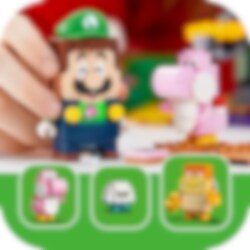 Introduser barn for det interaktive LEGO® Super Mario™ universet med Startbanen På eventyr med Luigi (71387). En morsom gave til barn som liker å følge med på det som skjer. Settet inneholder en LEGO® Luigi™ figur som umiddelbart reagerer på det som skjer via LCD-skjermen og en høyttaler. Spillerne tjener digitale mynter når de hjelper LEGO Luigi med å komme seg gjennom den snurrende vippehusken, takle flyutfordringene, samhandle med rosa Yoshi og nedkjempe Boom Boom og en Bone Goomba. De nøttebrune klossene i tårnoppsettet utløser forskjellige reaksjoner hos LEGO Luigi, og ?-klossen kan gi ekstrabelønninger. Det er gøy å leke sammen Barna kan leke alene eller med en venn. Når de kobler sin LEGO Luigi til LEGO® Mario™ (ekstra figurer følger ikke med) via Bluetooth™, tjener de ekstramynter for lagarbeidet. Byggeinstruksjoner er tilgjengelige i gratisappen LEGO Super Mario, som også inneholder inspirasjon til hvordan nivåene kan bygges om, pluss mye mer. Uendelige muligheter LEGO Super Mario leke- og samlersettene flytter de kjente og kjære Super Mario-figurene til vår fysiske verden og tilbyr en helt ny måte å spille på. Startbanene, ekstrabanesettene og Power-Up-pakkene kan kombineres i det uendelige så fans kan bygge sine egne nivåer.