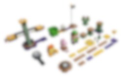 Kast deg inn i LEGO® Super Mario™ universet (eller utvid det) med denne heftige startbanen! Se hvordan LEGO® Luigi™ reagerer på rosa Yoshi, Boom Boom og en Bone Goomba på nivåene du bygger. Spinn, vipp og fly for å samle mynter. Få superkrefter med ?-klossen. Lek med venner eller familie, og koble deg til LEGO® Mario™ figuren deres. Fordi det er gøy å leke sammen, og fordi du samler bonusmynter mens du leker!