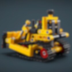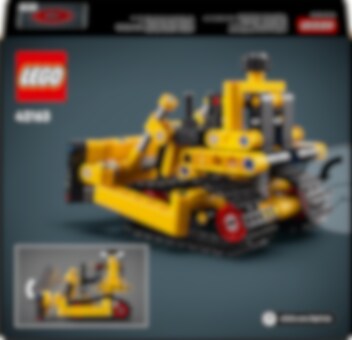 La oss sette i gang! Det er mye arbeid som venter på byggeplassen, men heldigvis er hjelpen nær med LEGO® Technic Mektig bulldoser. Barn kan glede seg til en gøyal byggeprosess før de skyver den framover for å teste ut beltene. Vri elementet for åheve og senke skjæret. Hvilke jobber finner du til denne mektige bulldoseren?