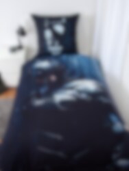 Kult vendbart dynetrekk og putetrekk med et tøft motiv av Gothams superhelt Batman.
