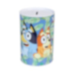 Sparegris med et flott motiv av Bluey og Bingo. Perfekt som gave til alle Bluey-fans! Merk at sparegrisen ikke kan åpnes, så pengene er trygge til det er tid for å tømme den.