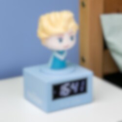 Våkn opp til musikk fra Frost-filmen med denne magiske vekkerklokken med Elsa! Klokken er 17 cm høy og har både lys- og lydfunksjon. Elsa lyser vakkert samtidig som det spilles musikk fra filmen når alarmen går.