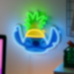 Få en tropisk stemning på veggen med denne morsomme LED-vegglampen i form av Stitch! Med neonblått, grønt og gult lys lyser den opp rommet og skaper en leken og fargerik atmosfære – perfekt for alle Lilo & Stitch-fans.