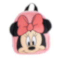 Gjør hverdagen litt søtere med denne rosa barneryggsekken med motiv av Minnie Mus! Sekken er laget av myk polyesterplysj og har Minnies smilende ansikt, stor sløyfe og myke ører, perfekt for små barn som vil ta med seg favorittsakene sine til barnehagen eller på tur.