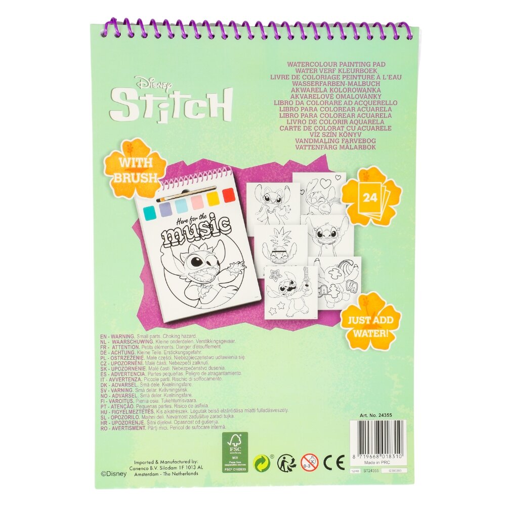 Gi dine små kunstnere en rolig opplevelse med Stitch Malebok! Med vannfarger på hver side kan de enkelt lage fargerike kunstverk. Setet inneholder: