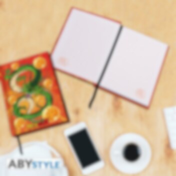 Kul notatbok i oransje farge med motiv av dragen Shenron med Dragon Balls på forsiden og Dragon Balls japanske logo på baksiden. En tøff ting å ha med på skolen som er litt annerledes enn en vanlig notatbok. Kanskje du kan skrive om strategier for å liste opp stedene du kan samle inn de syv forskjellige Dragon Balls? Notatboken er i A5 format og har 180 sider. Dette er et offisielt lisensiert Dragon Ball Z-produkt.