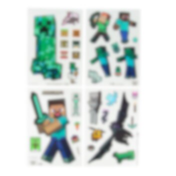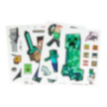 Pakke med 35 vindusklistremerker som er fordelt på 4 ark med Minecraft-tema. Lag dine egne Minecraft-scener med disse på vinduet. Størrelse: Mellom 2 til 17 cm.