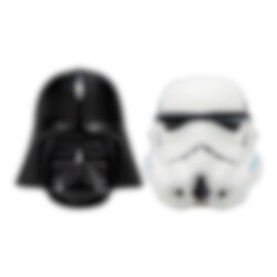 2 stk. salt- og pepperbøsser som forestiller de ikoniske hjelmene fra Star Wars: Stormtrooper for salt og Darth Vader for pepper. Gi kjøkkenet ditt et galaktisk løft med disse unike bøsser, som lagrer salt og pepper på en morsom og kreativ måte!