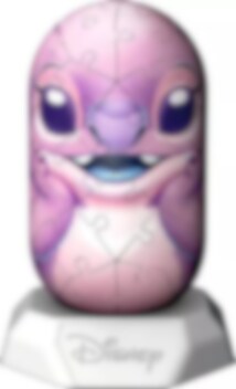 Bygg din egen figur med Ravensburger 3D Puslespill - Hylkies Angel 54 brikker. Puslespillet forestiller den rosa karakteren Angel fra Disneys Stitch i kapselform. Brikkene er laget av plast og nummerert på baksiden for å gjøre monteringen enklere.