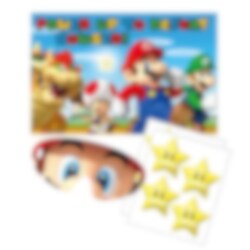 Partyspill som du og dine venner kan ha gøy med på bursdagen i Super Mario tema. Her ska ni prøve at sette dit en stjerne ovenfor Toad. Den som kommer nærmest vinner. Inneholder 1 spillebrett (62x95 cm), 8 stk. klistremerker forestillende en stjerne og 1 øynebindel.