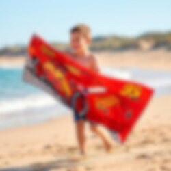 Dette kule badehåndkleet med Disney Biler og Lynet McQueen er et flott tilbehør for fartsfylte dager ved stranden eller bassenget. Med sitt fargerike motiv av nummer 95 på en klar rød bakgrunn blir det raskt en favoritt etter badet.