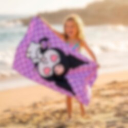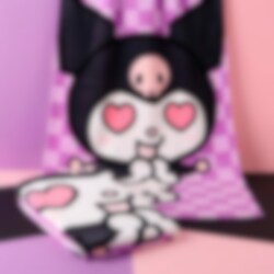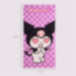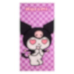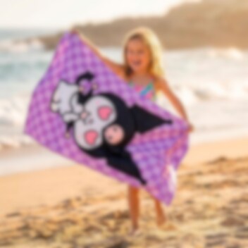 Svøp deg i mykhet med Kuromi etter et deilig bad! Dette badehåndkleet viser den populære Sanrio-karakteren Kuromi med hennes ikoniske hjerteøyne, mot en lilla rutet bakgrunn. Designet er en morsom detalj ved bassenget eller på badet.