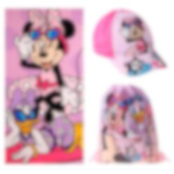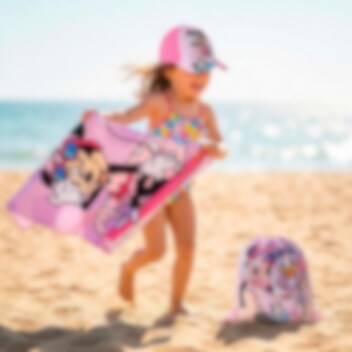 Et fargerikt og praktisk sett i Minni Mus-tema som inneholder håndkle, caps og gympose, ideelt for strand, basseng og alle sommerens eventyr. De lekfulle motivene med Minni Mus og venner gir en glad og sommerlig stemning.