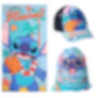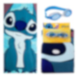 Sett med badehåndkle og svømmebriller i Stitch-tema, ideelt for strand, basseng og alle sommerens badeeventyr. Det fargerike designet med Stitch gjør settet både lekent og praktisk, og passer godt for barn som liker å leke i vannet.