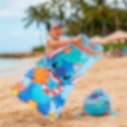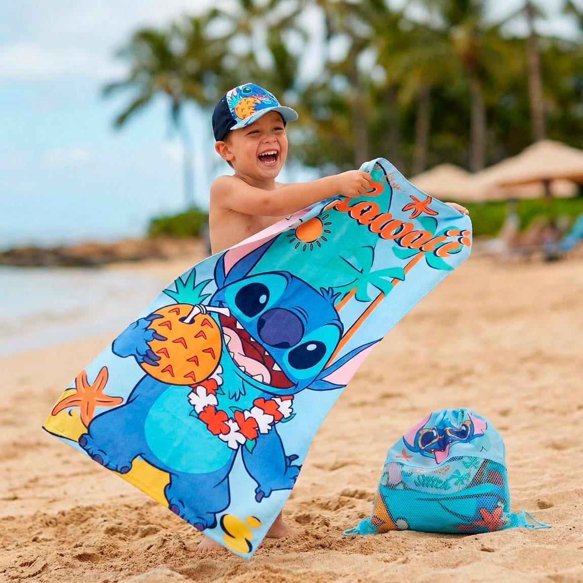 Et fargerikt og praktisk sett i Stitch-tema som inneholder håndkle, caps og gympose, ideelt for strand, basseng og sommerens alle eventyr. De lekfulle motivene gir en herlig følelse av sol, ferie og tull.