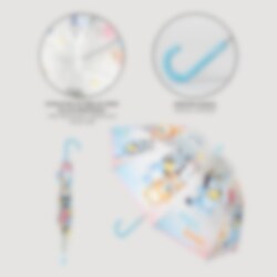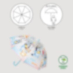Gjør regnværsdager morsommere med denne søte barneparaplyen med Bluey og Bingo! Paraplyen har en diameter på ca. 71 cm og er laget av slitesterk PoE og glassfiber. Den har 8 spiler og åpnes manuelt. Det fargerike designet med Bluey og Bingo gjør paraplyen til en favoritt blant alle små fans av den populære TV-serien.