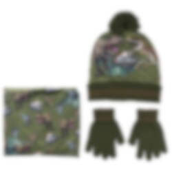 Forbered deg for kalde dager med dette Jurassic Park-settet som inkluderer en lue, skjerf og vanter. Perfekt for alle små dinosaur elskere der ute! Passer utmerket som gave eller for å komplettere en vintergarderobe. Setet er laget av en blanding av akryl, polyester og elastan.