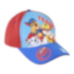 Fin caps i nyanser av blått og rødt med motiver av de populære redningshundene Marshall, Chase og Rubble fra Paw Patrol. Capsen er laget av 65% bomull og 35% polyester.