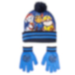 Setet inneholder en koselig lue og et par vanter med motiv fra den populære serien Paw Patrol. Perfekt for små Paw Patrol-fans som vil vise frem sine favorittkarakterer selv om vinteren! Setet er laget av en blanding av akryl, polyester og elastan.