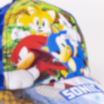 Stilig caps i muntre farger med motiver av Sonic, Knuckles og Tails fra populære Sonic the Hedgehog. Capsen er laget av 50% bomull og 50% polyester. Capsen har en omkrets på 53 cm og kan justeres bak, noe som gjør at den vanligvis passer for barn i alderen ca. 4 til 6 år.