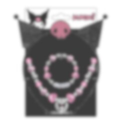 Gi antrekket ekstra attitude med dette stilige smykkesettet med Kuromi. Settet inneholder et glitrende diadem med katteører, et rosa og hvitt perlearmbånd med bokstavene "LOVE", samt et matchende halskjede med en søt Kuromi-anheng. Et perfekt tilbehør for små fans av Hello Kitty-universet som liker å skille seg ut.