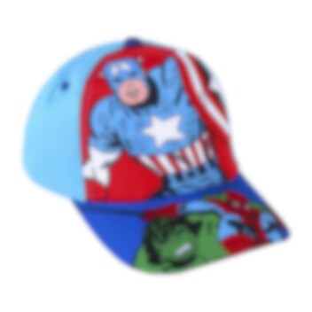 Et komplett sett med både en kul blå og rød caps med Avengers superhelter på og et par premium solbriller, begge i barnestørrelser. På brillene er det motiver av Hulken, Captain America og Spiderman.