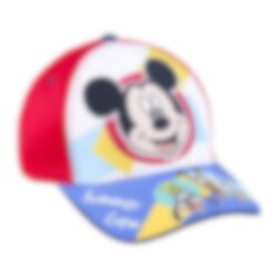 Et komplett sett med både en tøff blå og rød caps og et par premium solbriller, begge i barnestørrelser. På brillene er det motiver av de populære Disney-figurene Mikke Mus og Donald Duck.